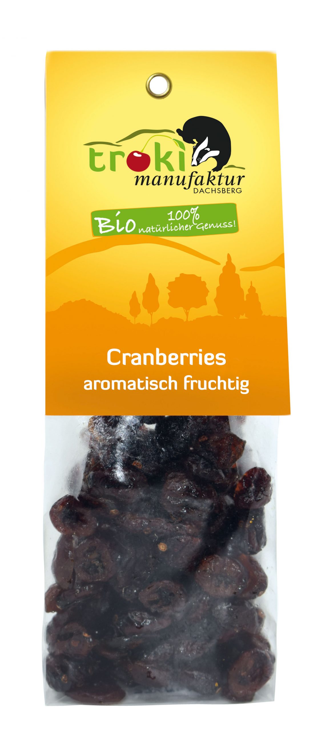 Zutaten: Cranberries* 60%, Rohrohrzucker*, Sonnenblumenöl* 0,5% als Trennmittel. *aus kontrolliert biologischem Anbau.