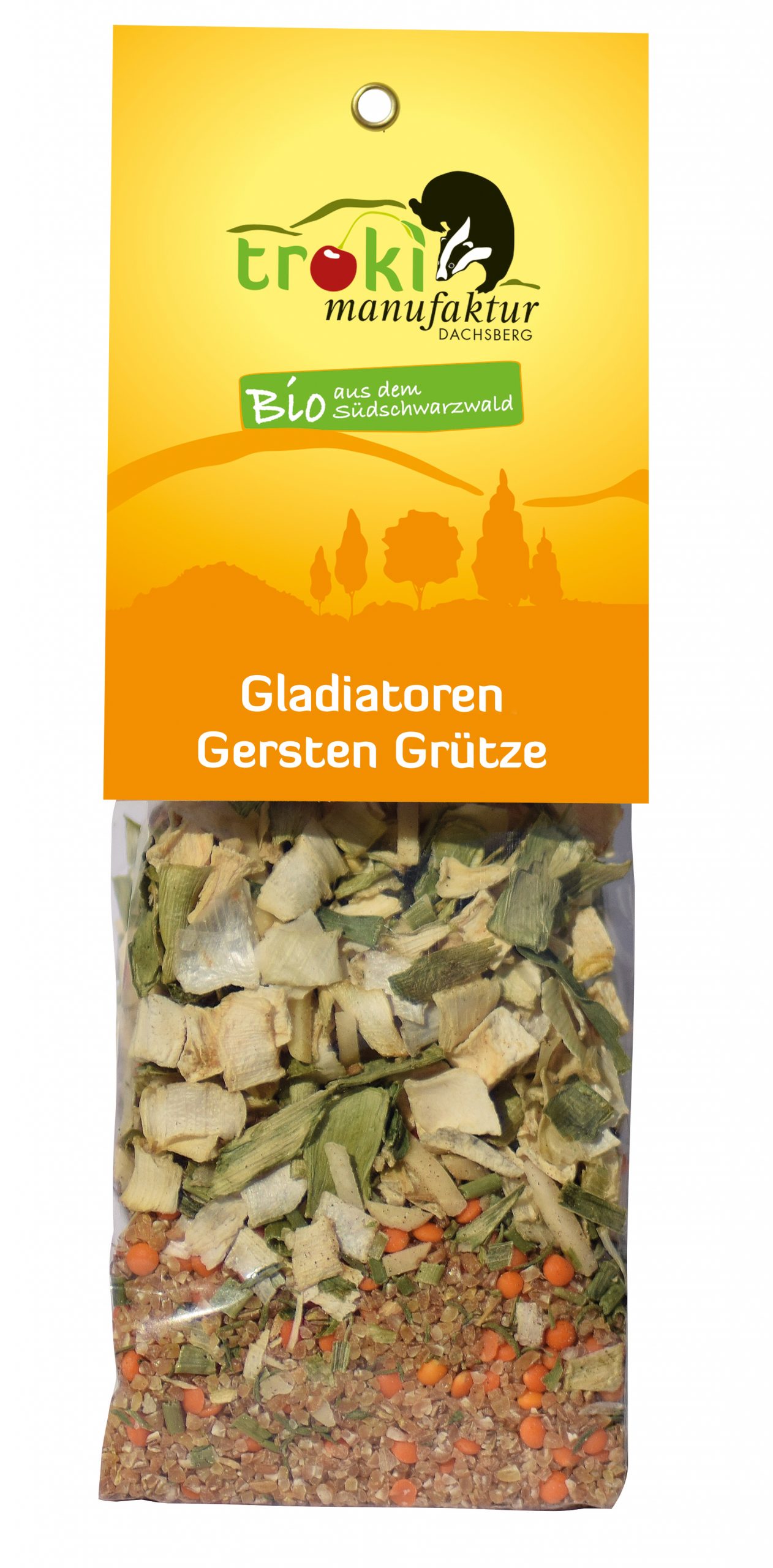 Zutaten: Gersten Grütze* (58%, Herkunft: Baden Württemberg), Rote Linsen*, Pastinaken*, Mandelstifte*, Weinbeeren*, Steinsalz, Lauch*, Fenchel*, Thymian*, Schnittlauch*, Knoblauch*, Pfeffer*, Lorbeer*. *kontrolliert biologische Erzeugung – 175g.