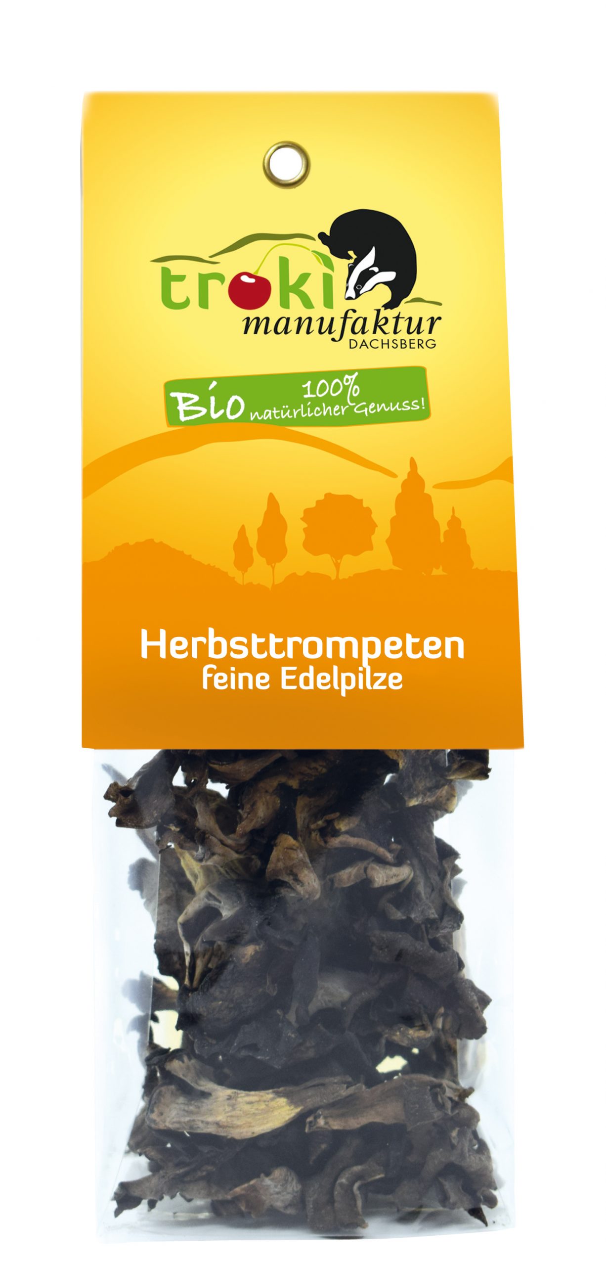 Zutat: Herbsttrompeten aus zertifiziert ökologischer Wildsammlung. Herkunft: Balkan